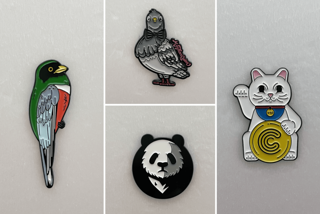 - Enamel pins: Durable but brittle—handle with care to avoid chips.